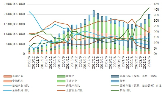 我國基礎設施投資在上半年顯示復蘇暖意,增長5.4%。信托資金投向基礎產業(yè)的規(guī)模為1.63萬億元,在資金信托總規(guī)模中占比8.19%,較2023年4季度末增加1171.60億元,占比小幅下降0.54%,與2023年同期相比,規(guī)模增加1217.37億元,同比增長8.05%,占比下降1.45%。