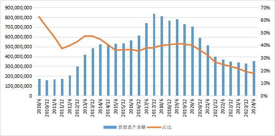 在信托資金運用方式上,信托貸款規(guī)模占比持續(xù)走低。2024年2季度末,信托貸款規(guī)模為3.55萬億元,在資金信托總規(guī)模中占比17.78%,比2023年4季度末增加2236.03億元,占比則下降1.36%。與2023年同期相比,信托貸款規(guī)模增加1702.16億元,同比增長5.04%,占比則下降3.74%。