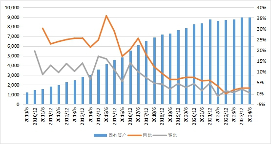 圖5 固有資產規(guī)模、同比增速及環(huán)比增速